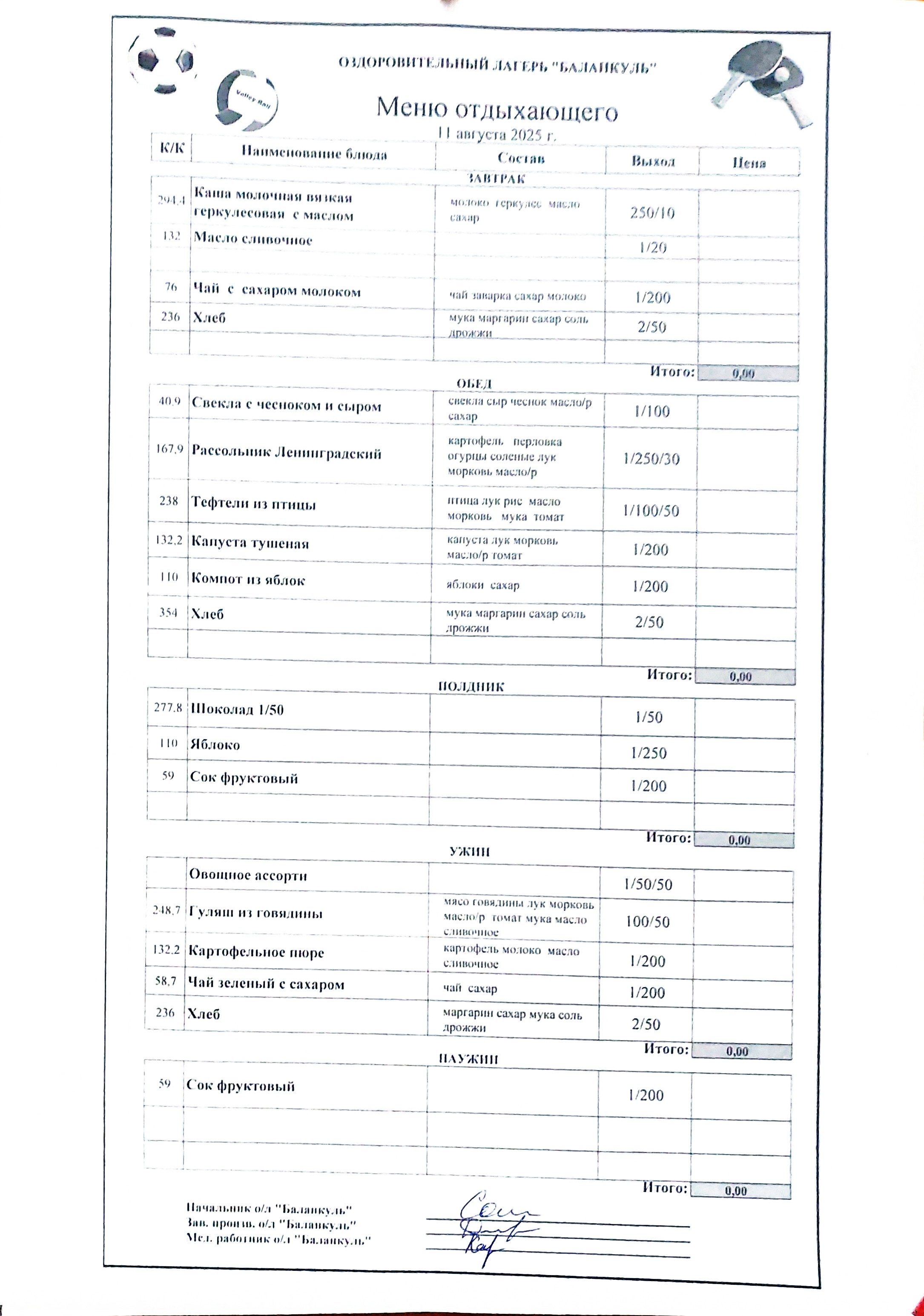 Меню на 11 августа