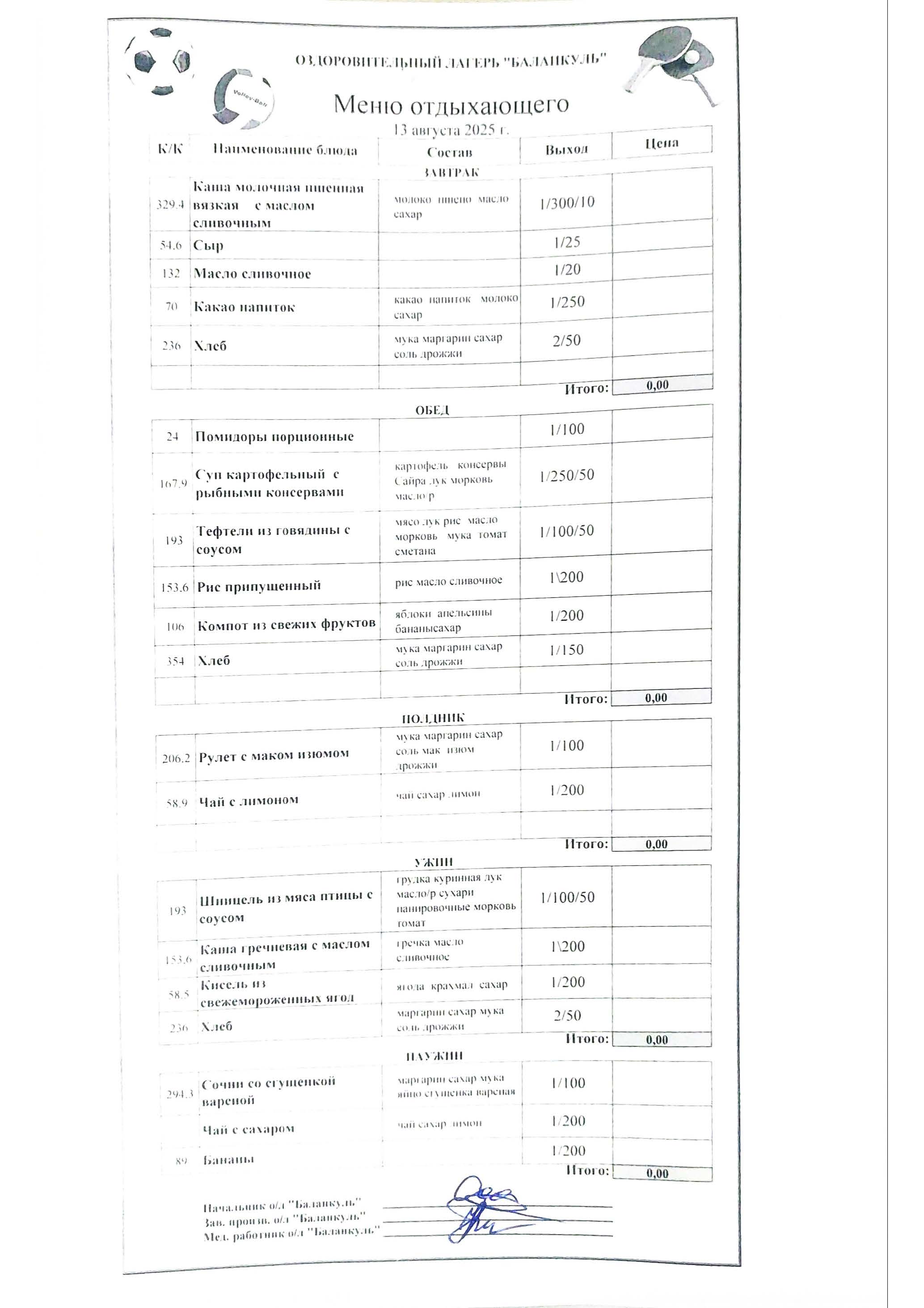 Меню на 13 августа