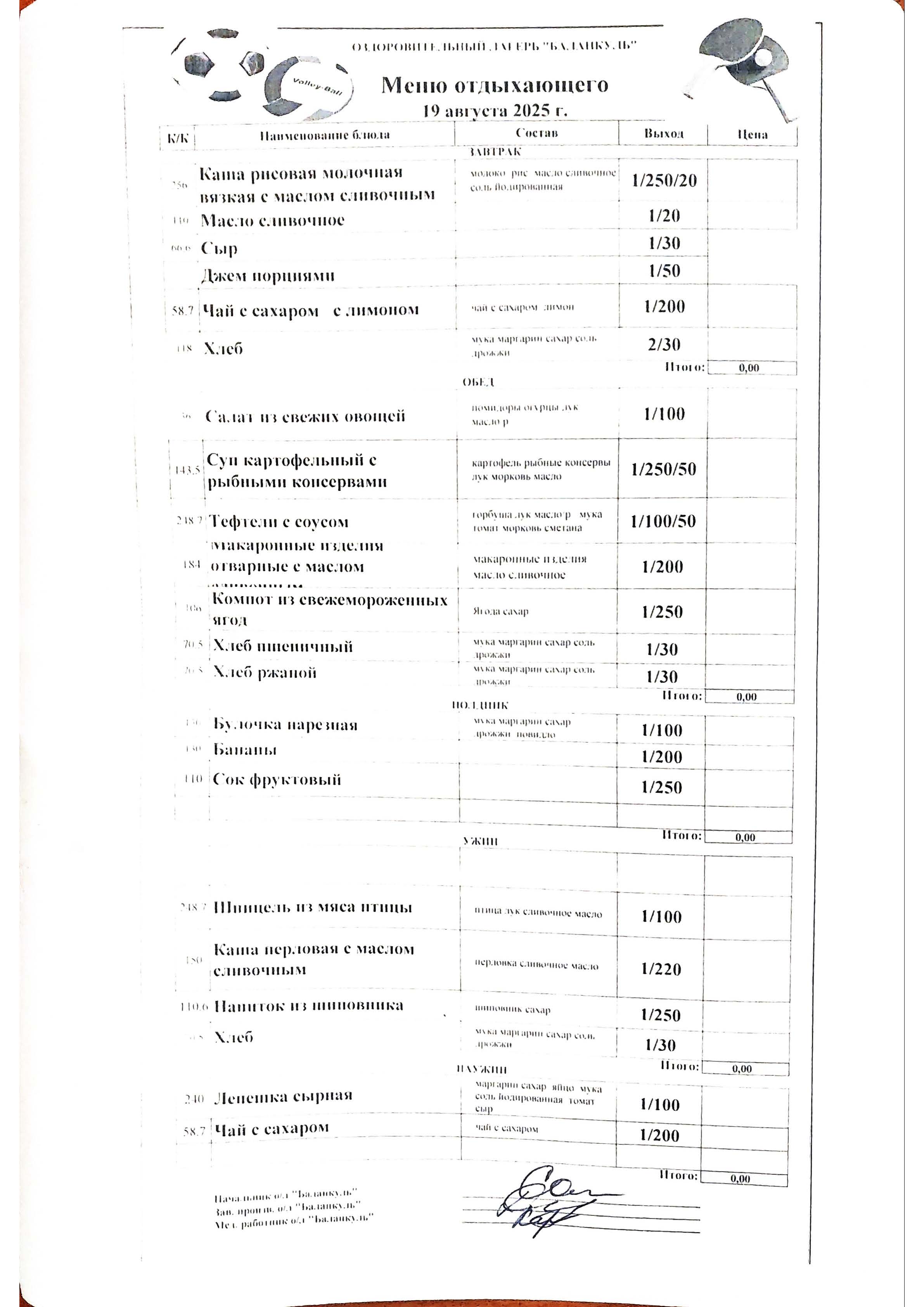 Меню на 19 августа