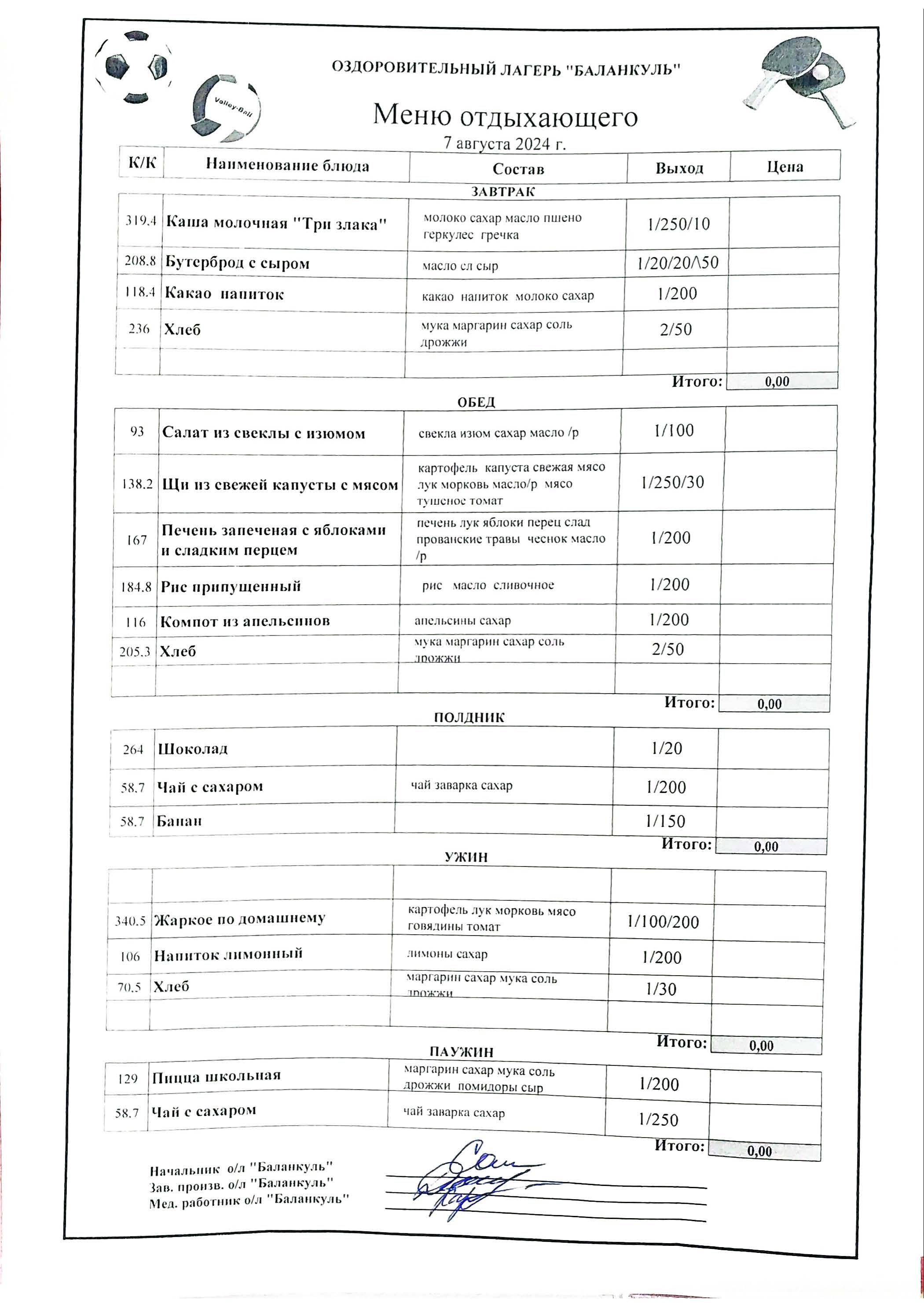 Меню на 7 августа