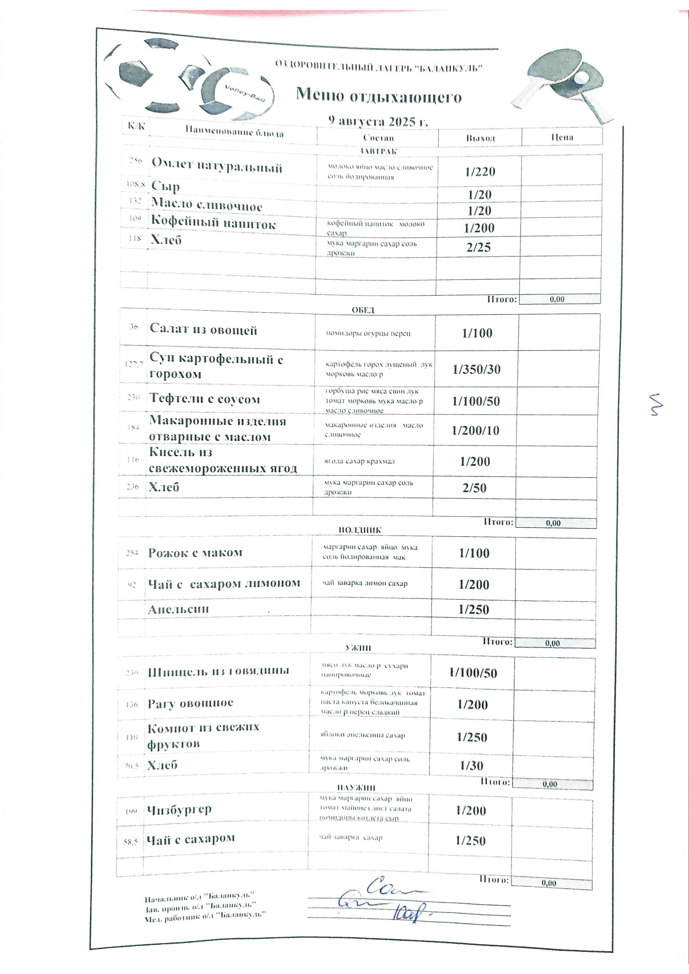 Меню на 9 августа